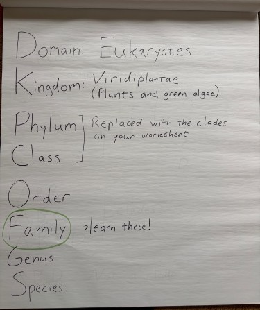 I will go through the different clades and ask people to say what plants they found in that clade.