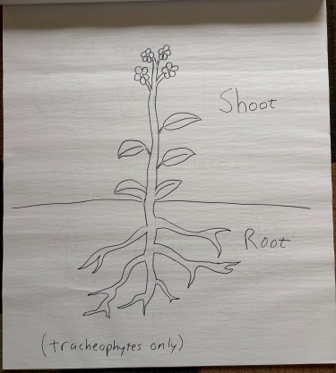 The most basic anatomical division is “root” (below ground, absorbs water and nutrients) vs. “shoot” (above ground, does photosynthesis).