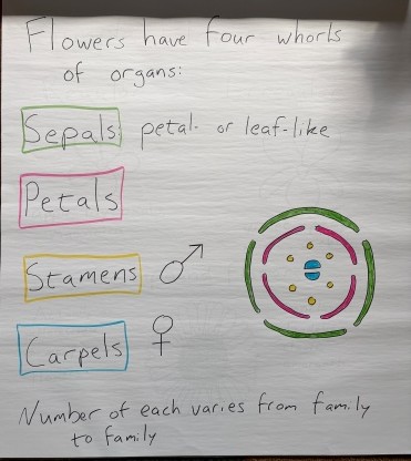 Flowers are made of four whorls of organs: