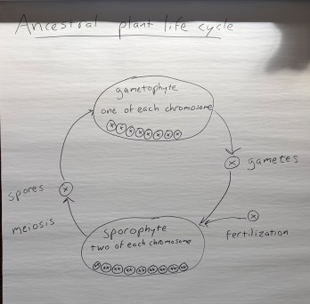 So it’s kind of like animal reproduction, except that the gametophyte can divide and grow as a multicellular organism, and in many cases lives free and independent of the sporophyte.